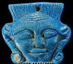 Ancient Kemet Artifact Details blue glaze faience amulet (3.8 x 4.3cm) of the Hathor-head;
